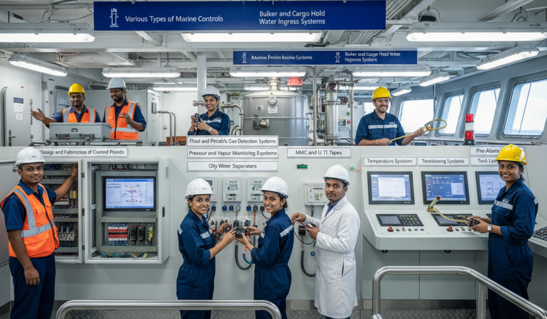 Design, fabrication, retrofitting, PLC/HMI integration, and fault finding for shipboard systems.
